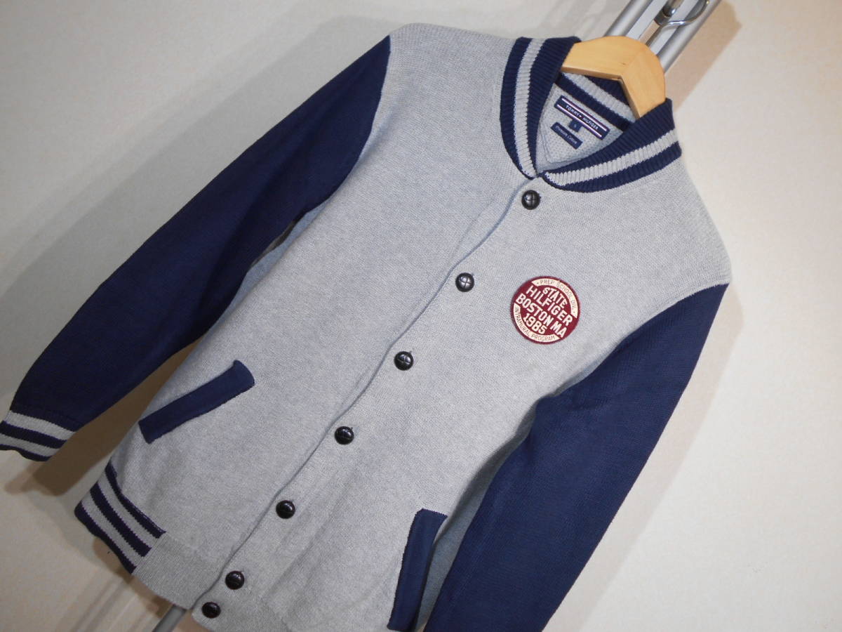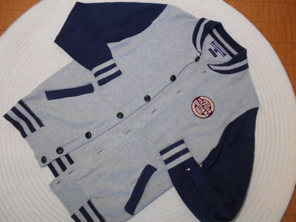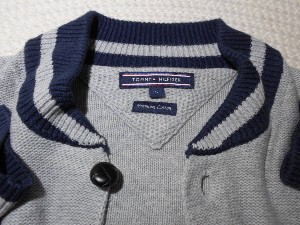 U349■トミーヒルフィガー★グレー*紺配色★綿ニットブルゾン■S | |||||||||||