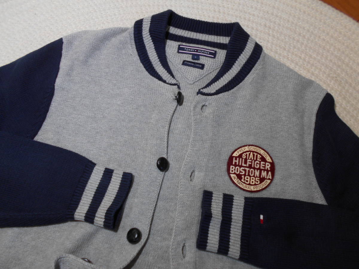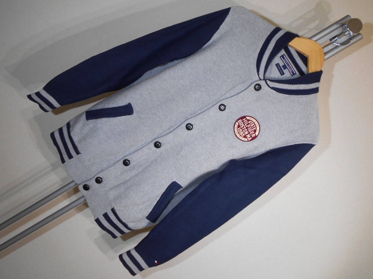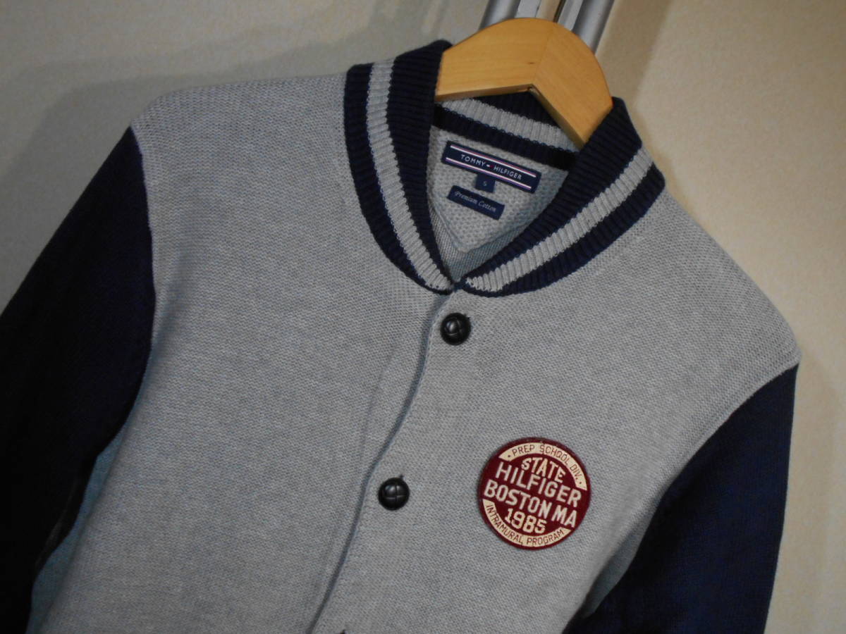 U349■トミーヒルフィガー★グレー*紺配色★綿ニットブルゾン■S | |||||||||||