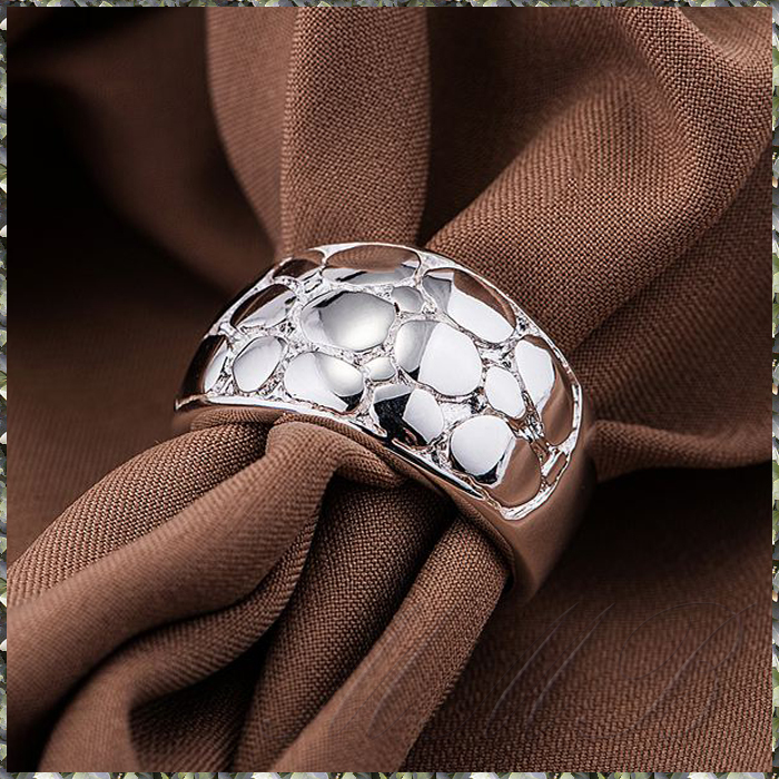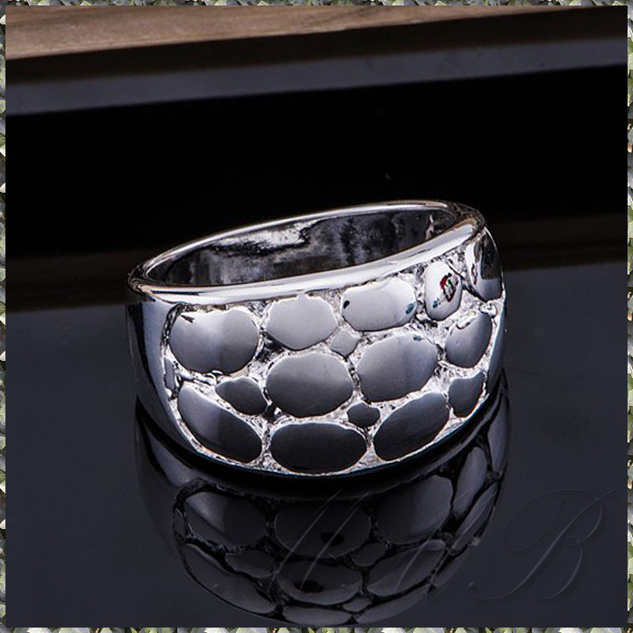 925 Sterling Silver Plated Circular Natural Stone Design 自然石 タイル 石垣 デザイン リング です。