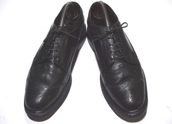 ◆商品説明◆ | ★ ◆サイズ:9・1/2 D(日本サイズ27.0~27.5程度) ◆最大甲幅:約11cm ◆アウトソール(全長):約31cm ※採寸の多少の誤差はご了承ください 他にも人気ブランドの商品を多数出品しております。希望のサイズ・デザイン等がないかどうかぜひチェックしてみてください★他の出品物を見る★ ◆お色:ブラック ◆靴の種類: ウイングチップ(甲に翼を模した「W」型の飾りがあるもの。) ・本革 ・グッドイヤー製法(ソールを堅牢に仕上げた製法。型崩れしにくくフィット感も良。工程が複雑な為、販売価格は高めに設定されます) ・重みがあり分厚い高級レザーソール ・シボ加工(革に凹凸のシワをつける加工。高級感を増し、傷を目立ちにくくさせる効果があります) ・正確な製造年はわかりませんが、かなり古めの年代品です ・ナイロン(NYLON)ソール 燃えにくく、耐油・耐候性に優れた素材を使用。強度があり、耐熱性や耐寒性にも優れています クラシカルで美しい装飾が魅力の一足! 男らしさがあり、再ブームになりつつあるウイングチップの革靴です。 大変上質な本革が使用されており、遠目からでも高級感の伝わる作りです。 あなたの魅力を高めてくれる素敵なお品です★ |