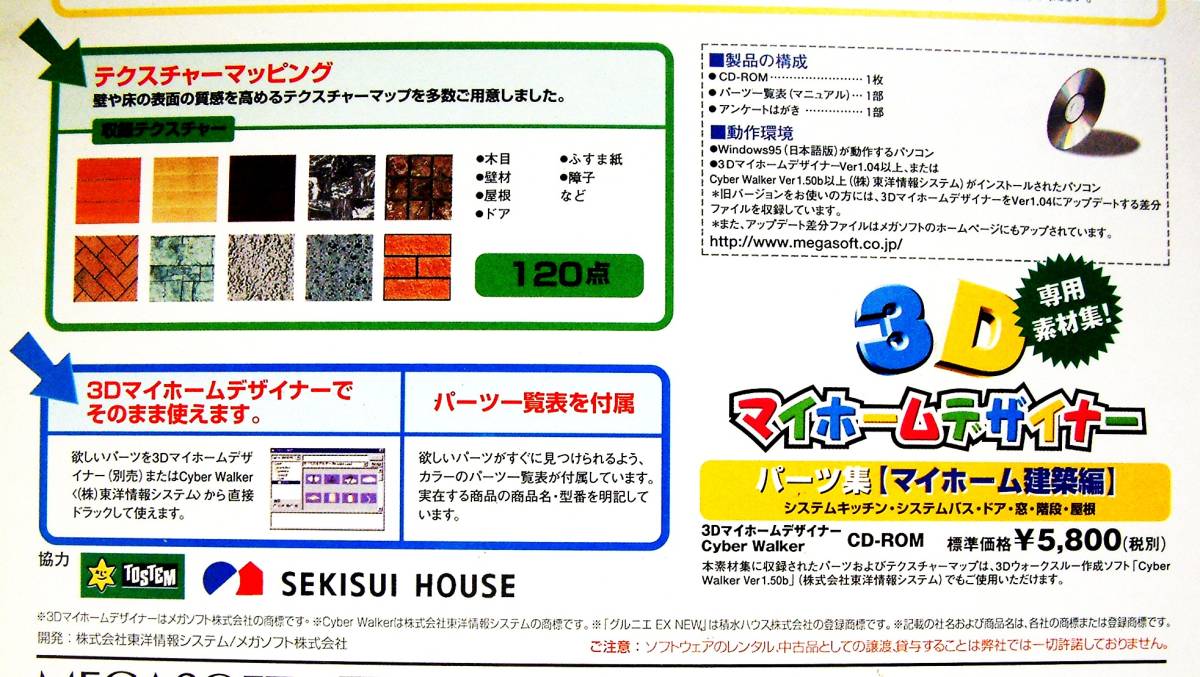 【4518】メガソフト 3Dマイホームデザイナー パーツ集 マイホーム建築編 素材[システム(キッチン,バス),ドア,窓,階段,屋根] Cyber Walker可