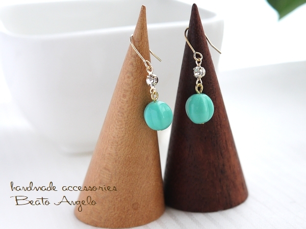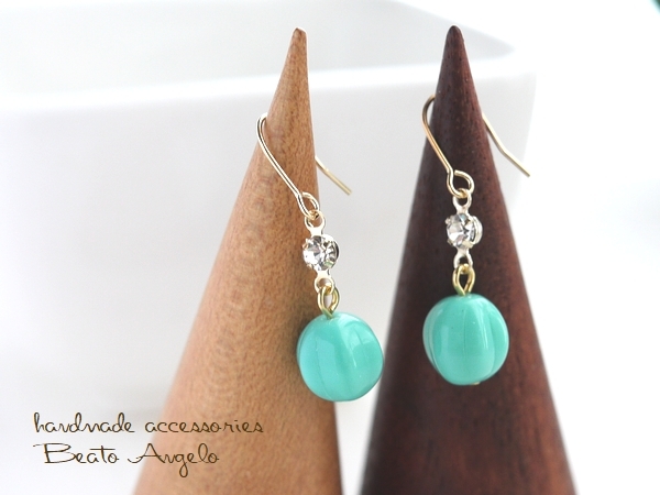 ◆◆+angelo+チェコメロンとラインストーンのピアス(p-283)ターコイズ G 夏 シンプル チタン 樹脂 イヤリング