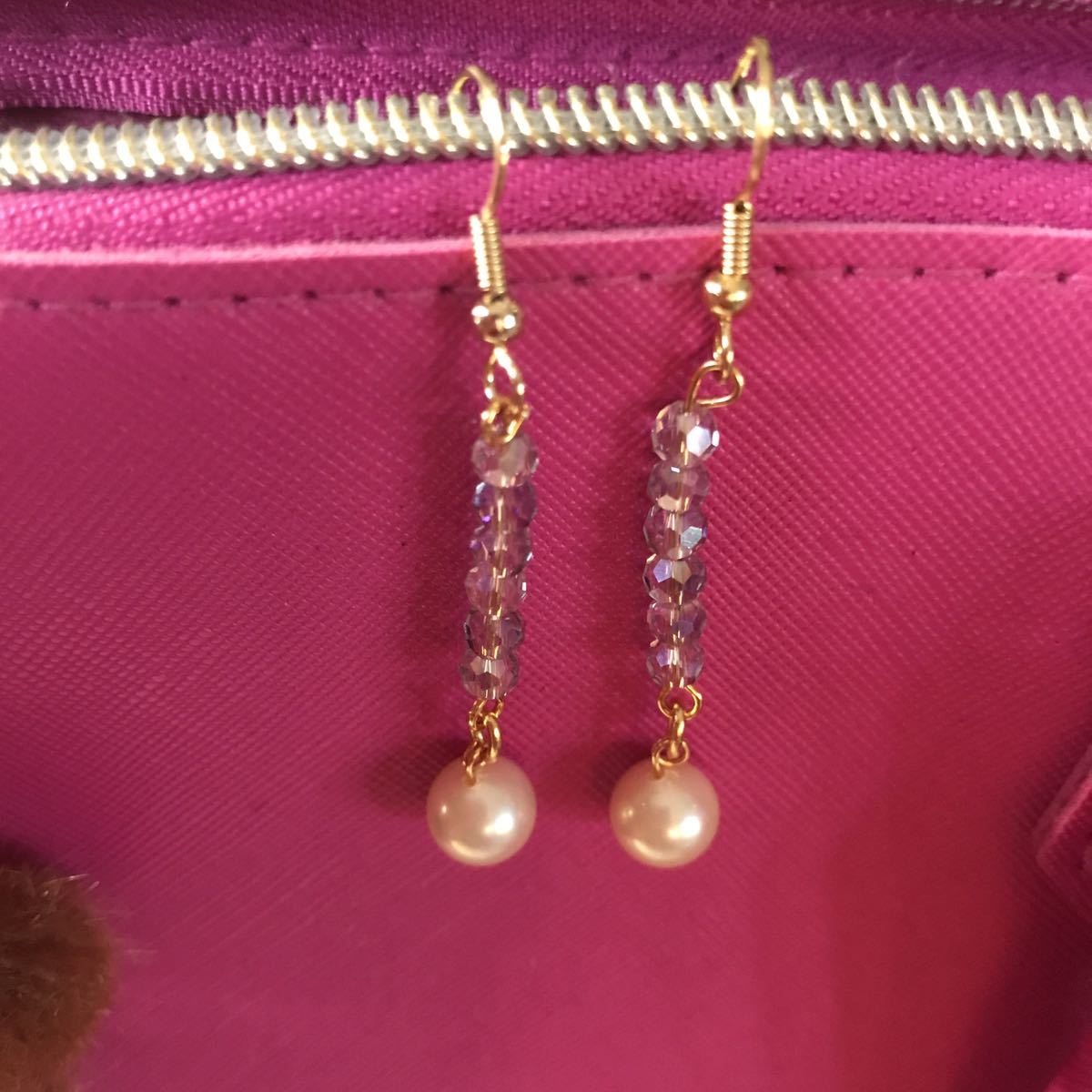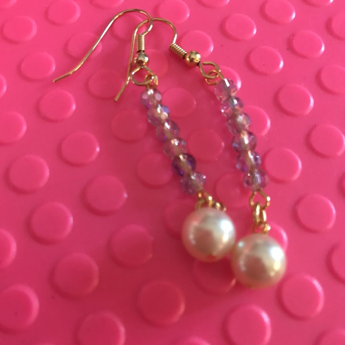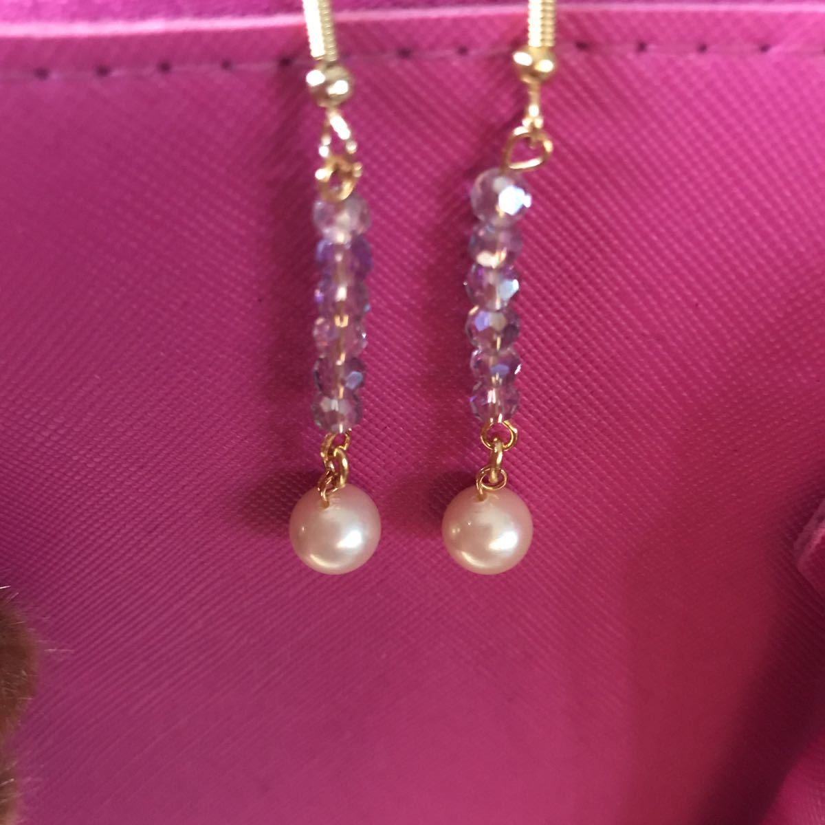 8ミリのマジョリカパール使用しております。フックはサージカルステンレス使用しております。