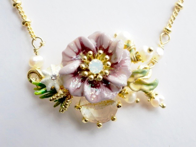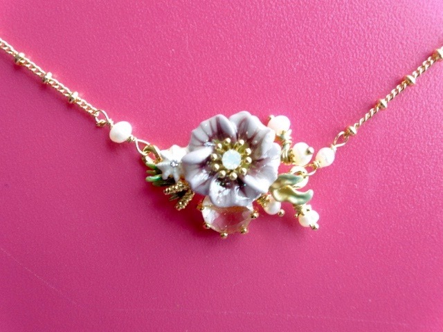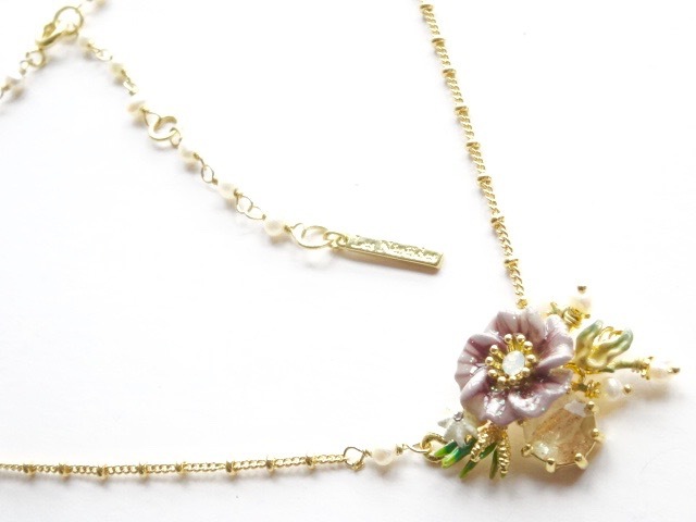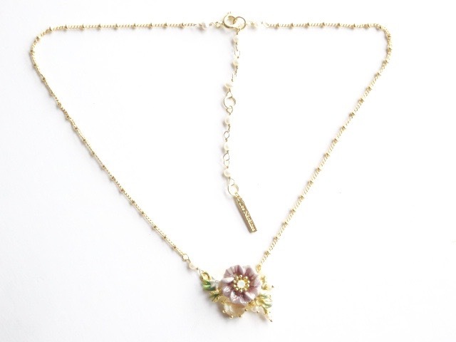 ● フランス レネレイド ネックレス 花 パープル 紫 ストーン パール ラインストーン 新品 N2 エヌドゥ Les Nereides パリ 人気ブランド