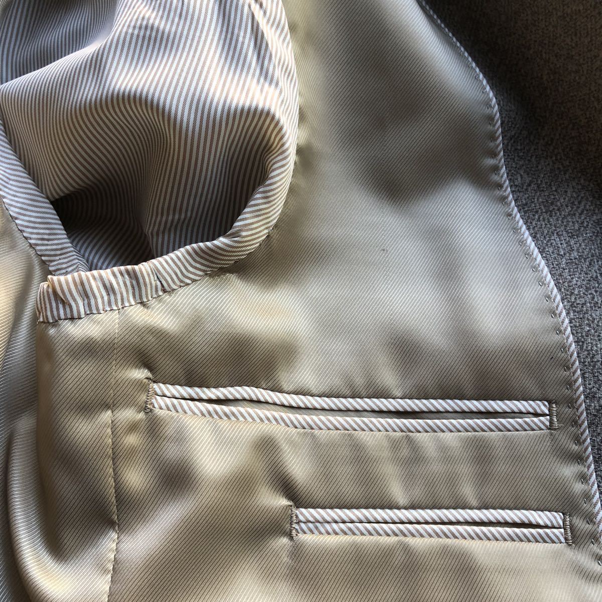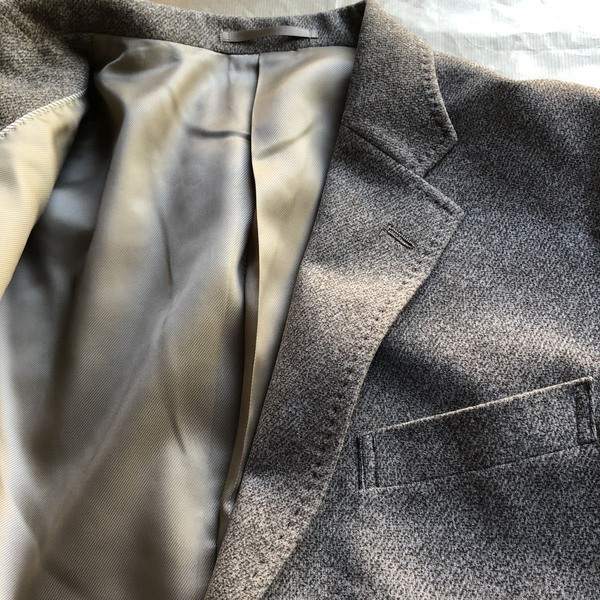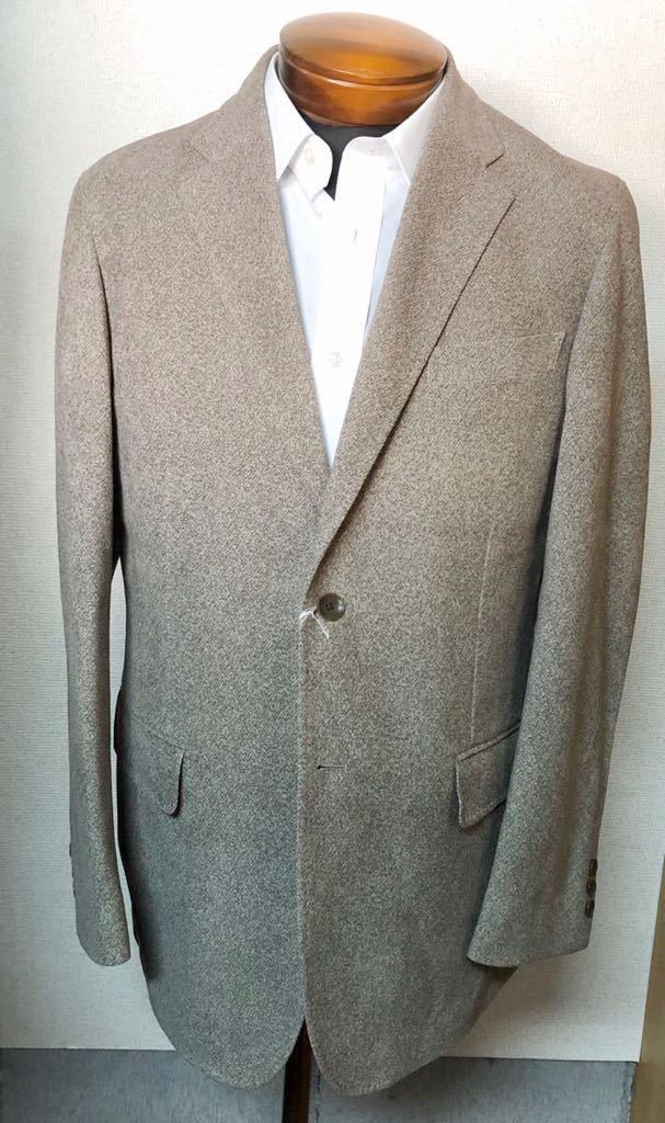・サイズ⇒AB7 ・各寸法⇒着丈76cm、肩幅47cm、袖丈62.5cm、脇下身幅56.5cm ※素人採寸となります、多少の誤差はお許し下さい。 ・表地⇒ポリエステル100% ・裏地(総裏)⇒ポリエステル ・色⇒ベージュ系 ・ステッチ⇒あり ・ベント⇒サイドベンツ ・袖ボタン⇒3個 ・台場⇒切台場 ・商品状態⇒新品(秋冬物) RE28325 | ||