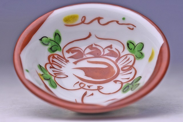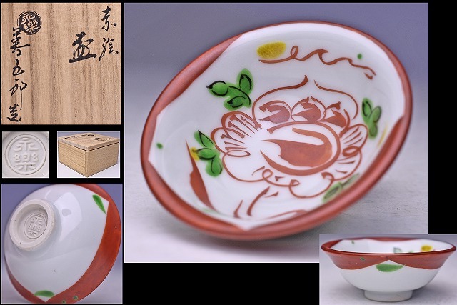 名工 永楽善五郎 16代 永楽即全 氏の 作品です。 明赤絵 を 永楽氏らしい 優しい 意匠とした 上手の 逸品です。 目立ったキズはありません。
