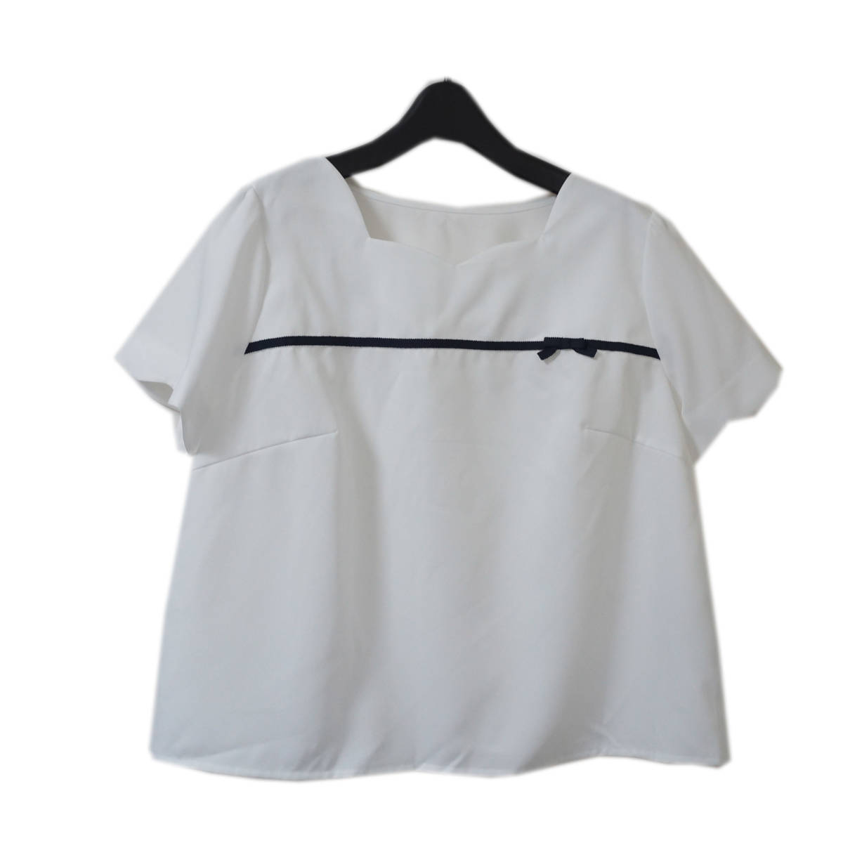 ●新品/プルオーバー/カットソー/波型/リボン/白系/21号/大きいサイズ/レディース●f5590