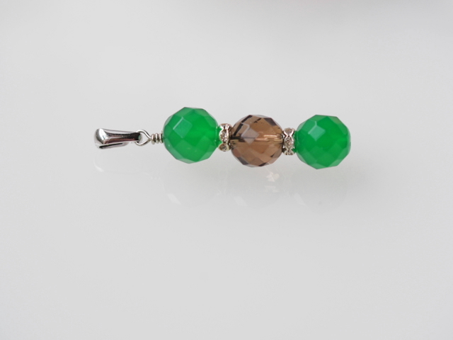 こちらは透明度が高く、グリンカラーのメノウの間に濃いブラウン水晶を組合わせたペンダントトップです