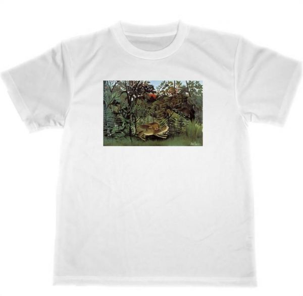 アンリ ルソー ドライ Tシャツ 飢えたライオンは身を投げ出してカモシカに襲いかかる 名画 絵画 グッズ