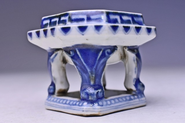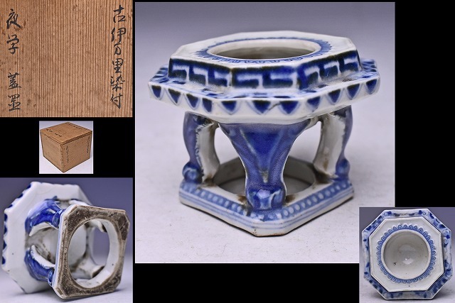 古伊万里 ★ 染付夜学蓋置 ★ 合せ木箱 ★ 茶道具 ★ 小品ながら丁寧な仕事の逸品 ★