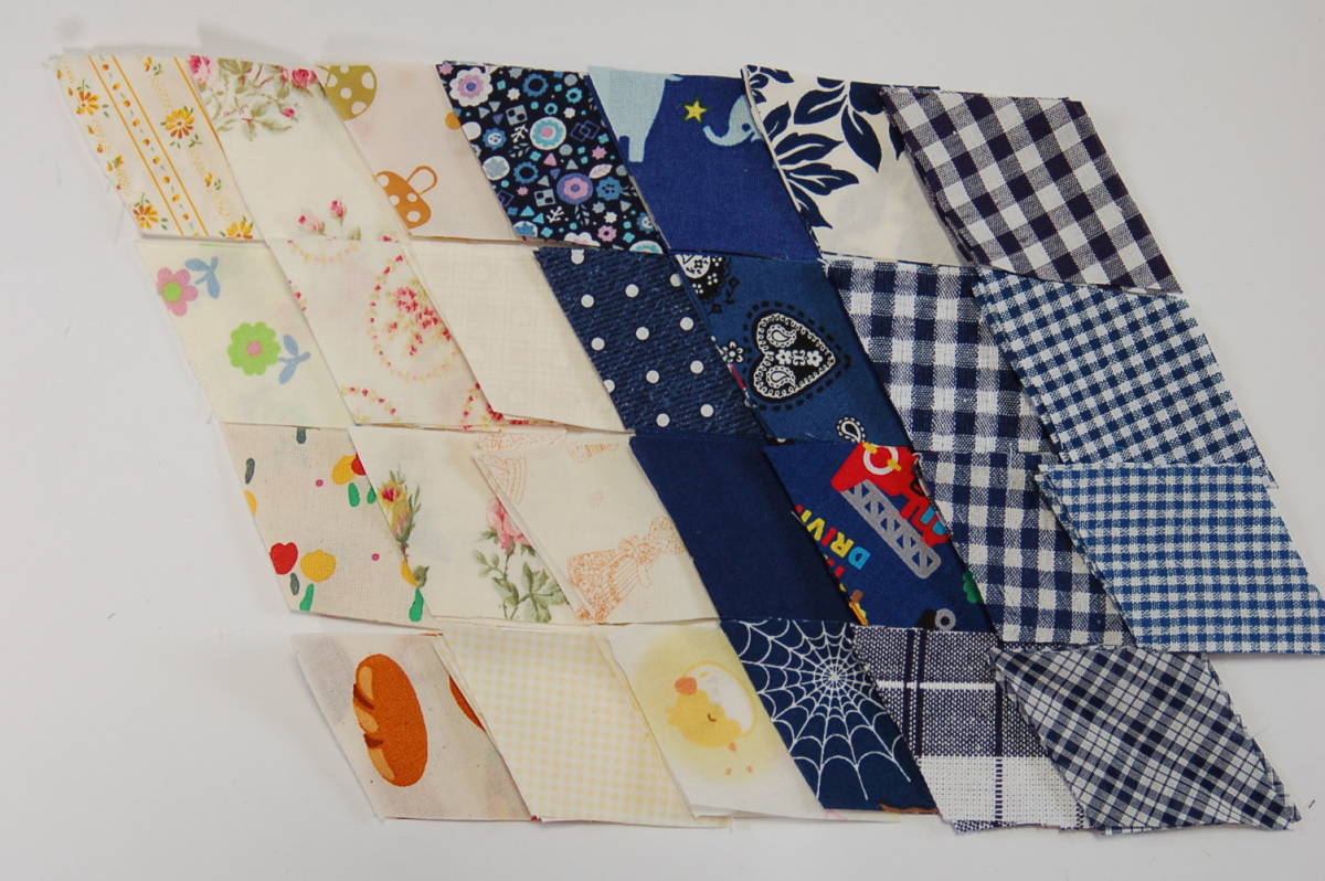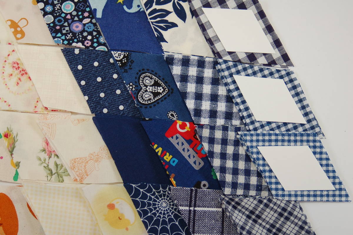 パッチワーク用ひし形出来上がりサイズ35㎜に裁断してます。
