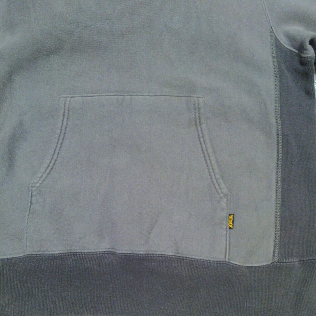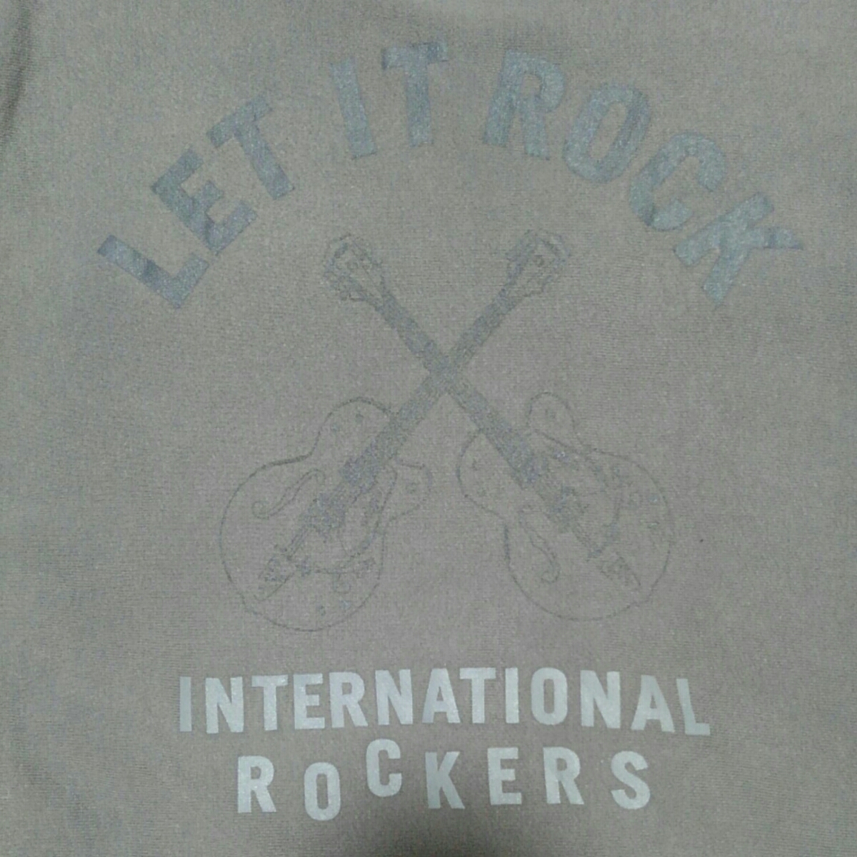 色は グレー×グレーの2トーン、背面にビッグロゴとギターのプリント入りでかっこいいです。