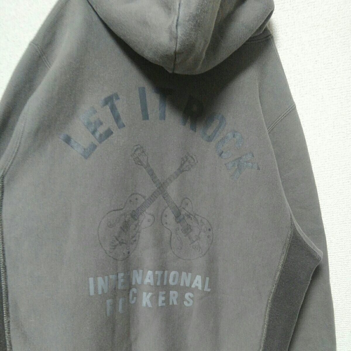 LET IT RIDE スウェットパーカ リバースウィーブ 灰 ツートーン ギター プリント K20D28