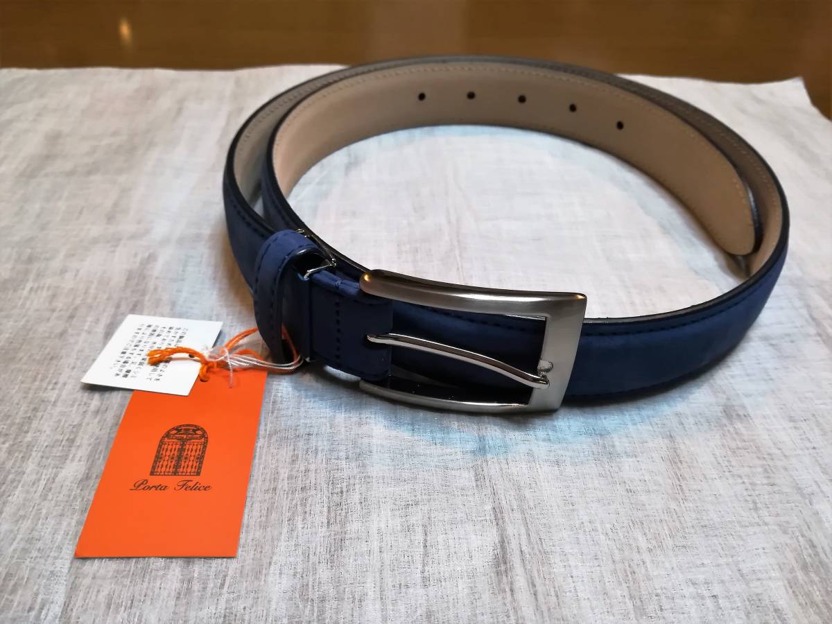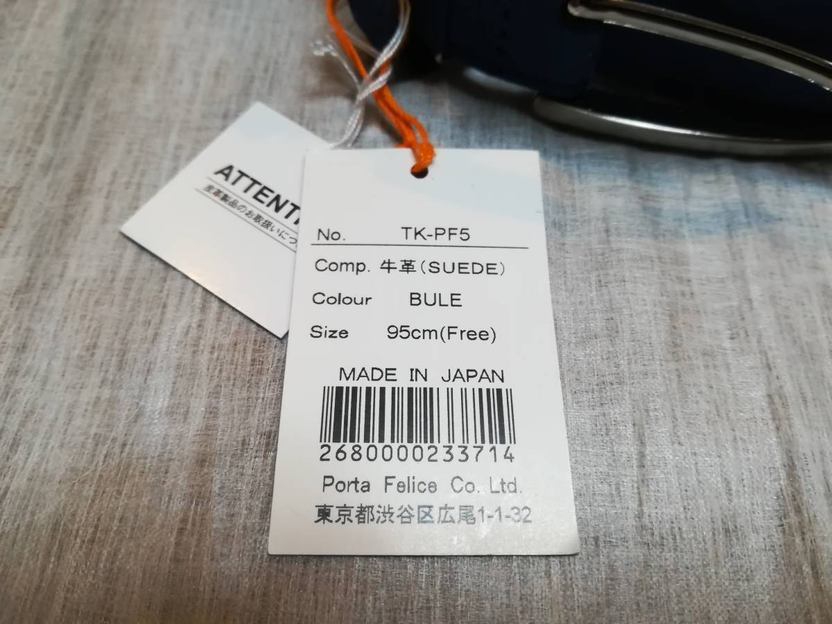 【新品未使用】メンズ用 Porta Felice 牛革(スウェード)バルト ブルー 95cm
