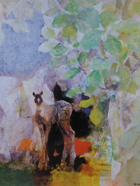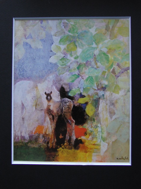 上橋薫、「朴の木若葉」、希少な額装用画集より、新品高級額装付、送料無料、日本人画家、yoni