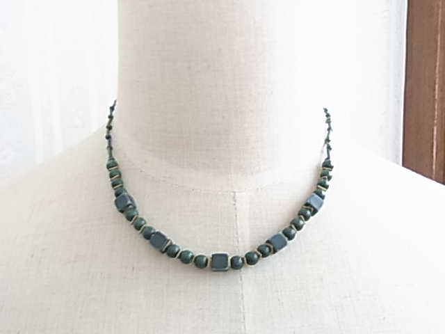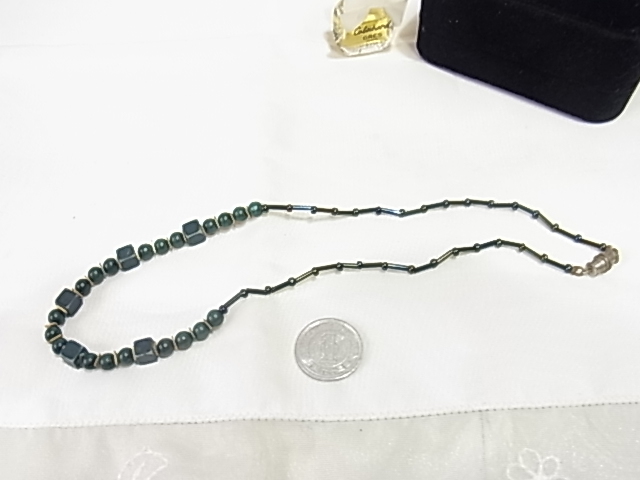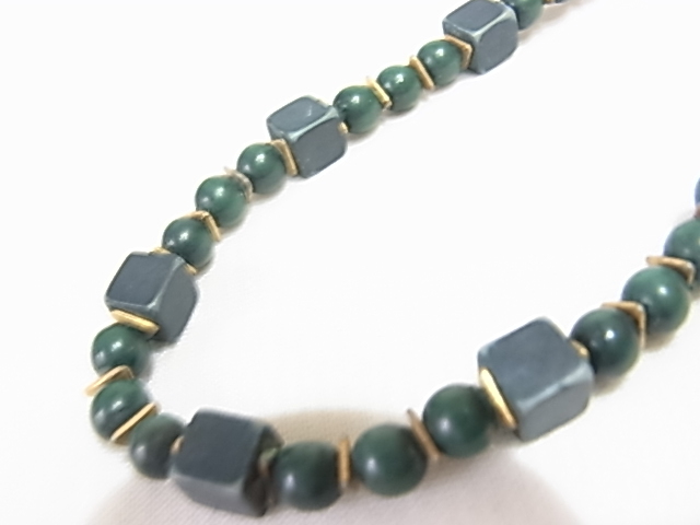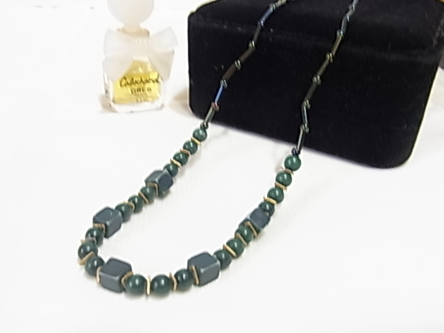 ヴィンテージ 緑色 グリーン 品質不明のストーン調 華奢デザインのネックレス△△