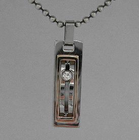 在庫処分★サージカル ステンレス製ジルコニア付プレート ペンダント/ステンアクセALL50%OFF