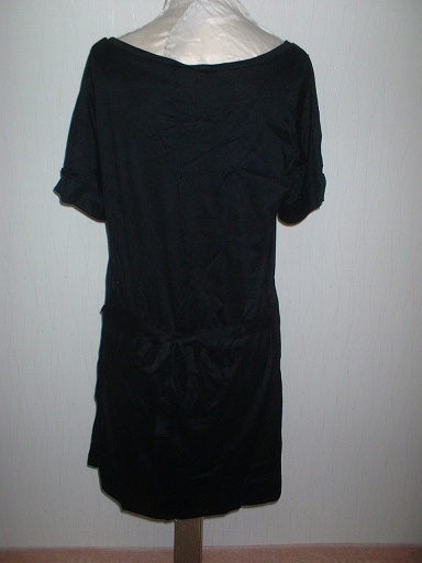 A 未使用☆即買♪UNIQLO黒半袖ラウンドネックワンピースリボンL