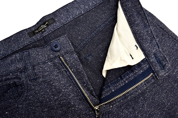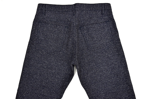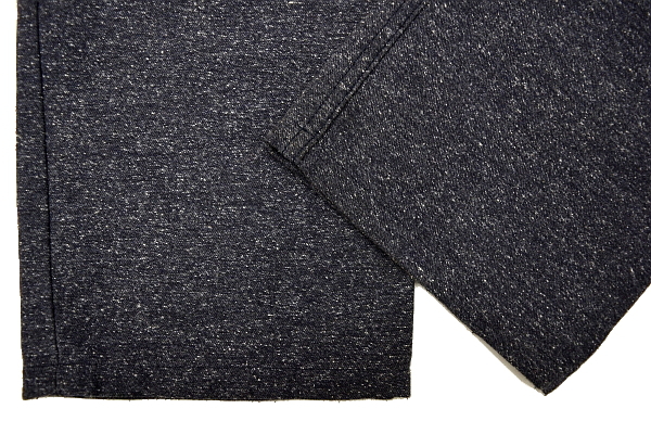 股上で合わせた、股部分の縫い合わせを基準にして、裾までの長さを計測しています。その際、縮みや、シワを考慮して、床より少し浮かせて、ピンと伸ばした状態で計測しています。