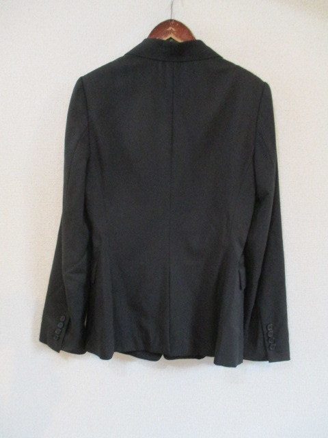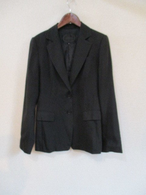 | 商品紹介 | 黒のシンプルなテーラードジャケットです。 やや着丈が長めです。 ウエストは切替えで少し細くなっています。 《素材》 表地:ポリエステル80% 毛15% ポリウレタン5% 裏地:ポリエステル100% |