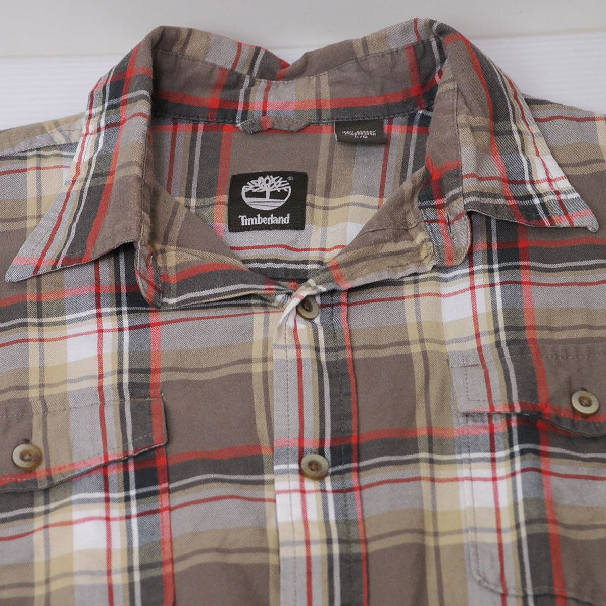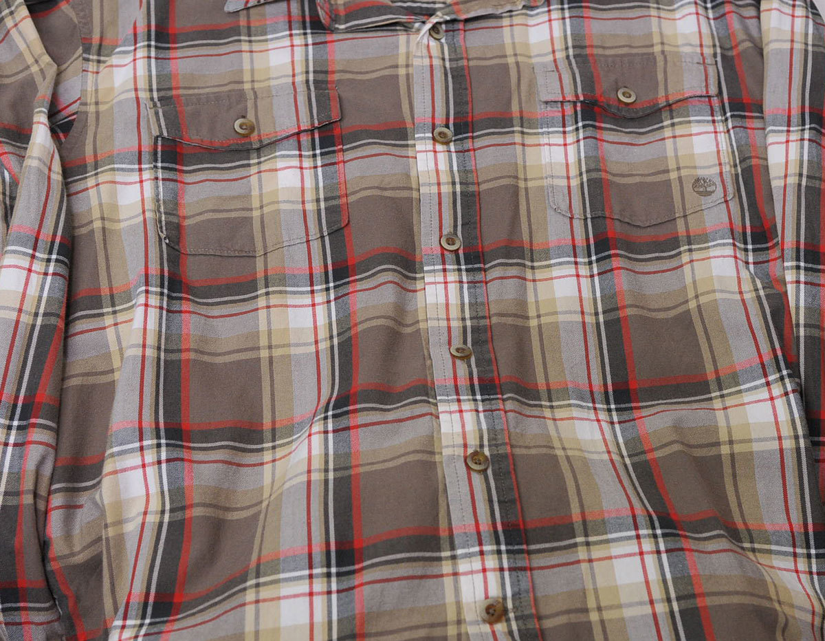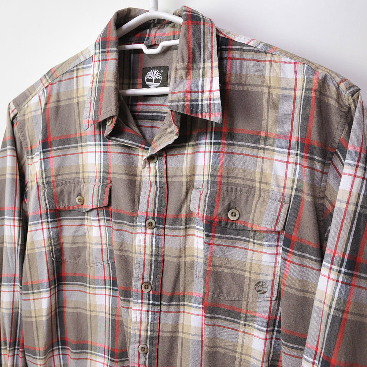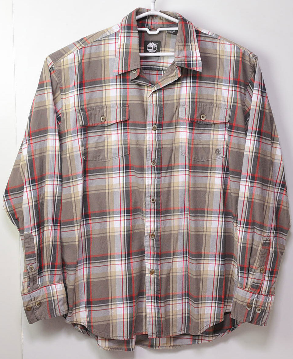 古着●ティンバーランド 長袖ネルシャツ グレー・レッド チェック L xwp