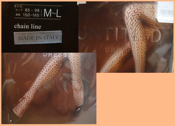 ●アンタイトル・チェーンライン柄タイツ●ベージュM-L 伊製