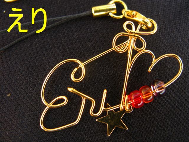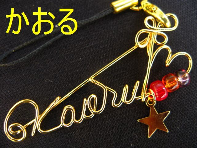 ■0.9mmの真鍮製針金を曲げて作った物に、金メッキを施した名前のストラップです。