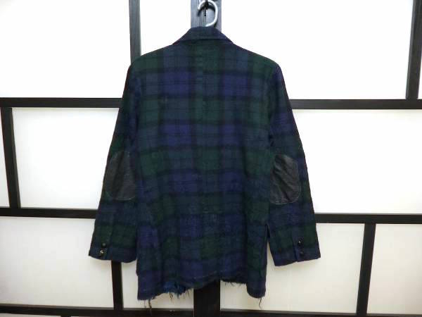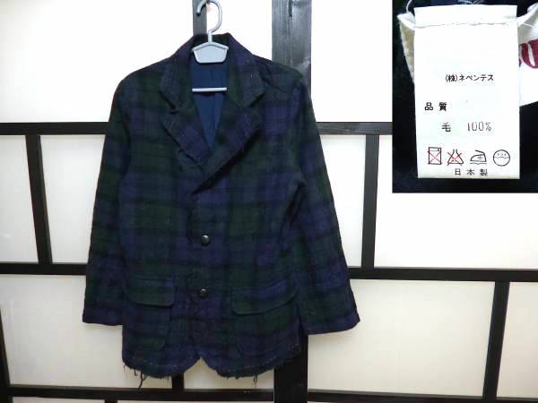 コメント | (株)ネペンテス取り扱い。全体的なデザインはシングルの3釦タイプで(くるみボタン)、センターベント、ポケットは左ムネと両スソ、内側の左ムネに付いています。ヒジ部分にレザー素材と思われるエルボーパッチ付き。エリからフロントボタンの横部分にはハンドステッチ入り。生地はウールで、表面をランダムな感じで部分的に剥がすような加工がされていて、生地がボコボコと剥げた感じになっています。フチの部分は切りっぱなしになっていてホツレた感じになっています。他にもネペンテスのアイテムや、その他いろいろなアイテムを出品しています。よろしければご覧ください。 |