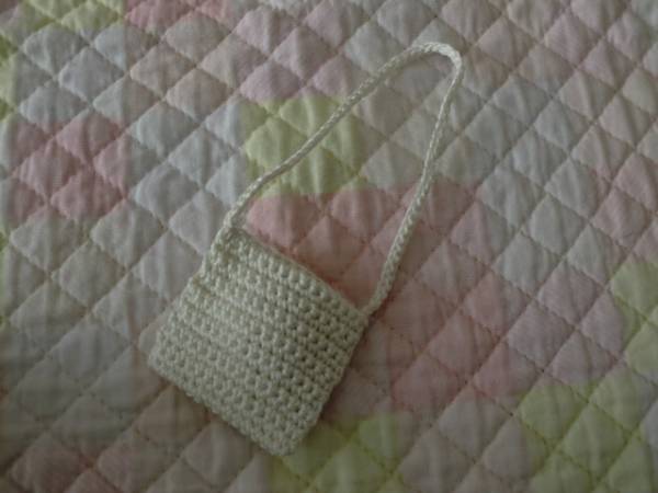 ポシェットはハマナカ・レース糸(エジプト綿)で編んでいます。バラの花はイメージえ編んでいます。バラは片面のみに付けています。