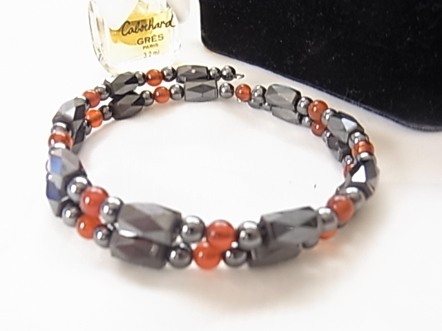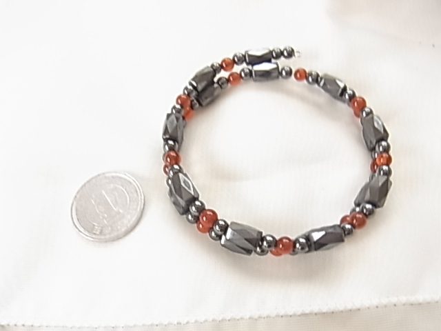 ビーズのようなストーン 磁器 磁石 グレー×レッド フリーサイズのブレスレット◎