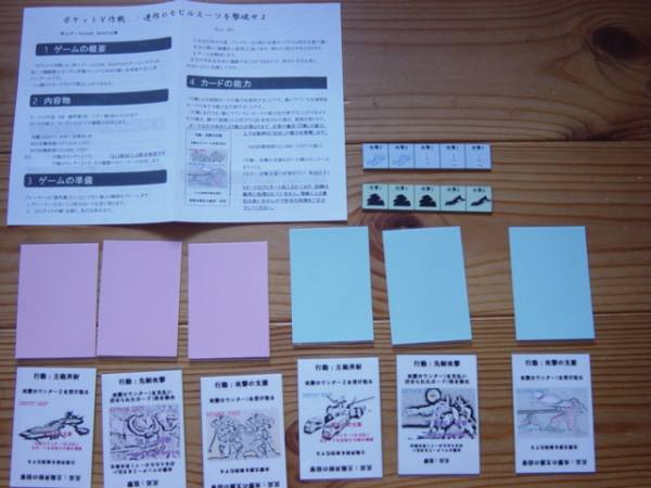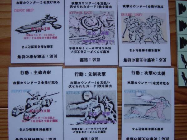 商品説明 | 同人ゲームのライアーマフィアのシステムを参考にガンダム序盤の シャアの追撃戦を再現するゲームです。敵の持つカードと攻撃を 予測、騙しあいの要素の強いポーカー的ゲームです。 カードラミネート加工およびユニットは完成済みです。 カード6枚チット5枚説明書2Pです。 |