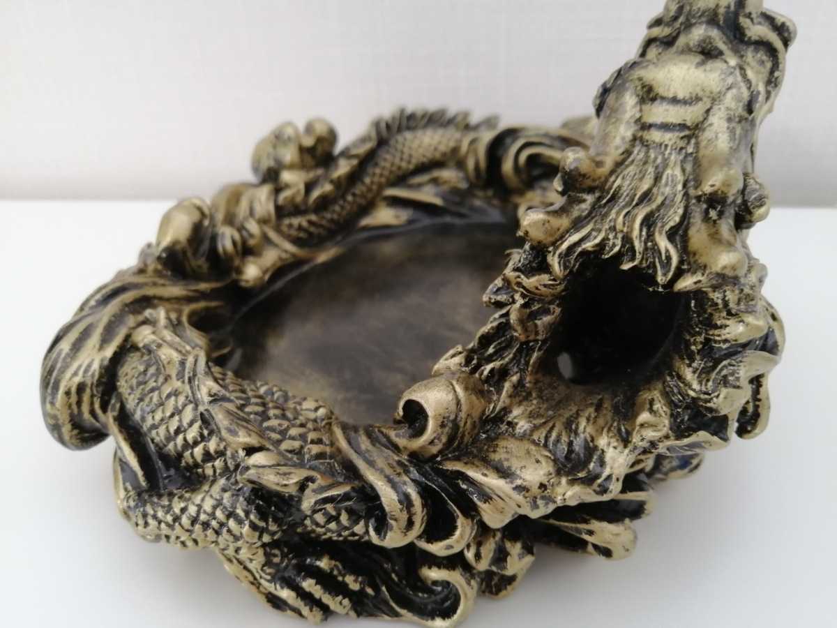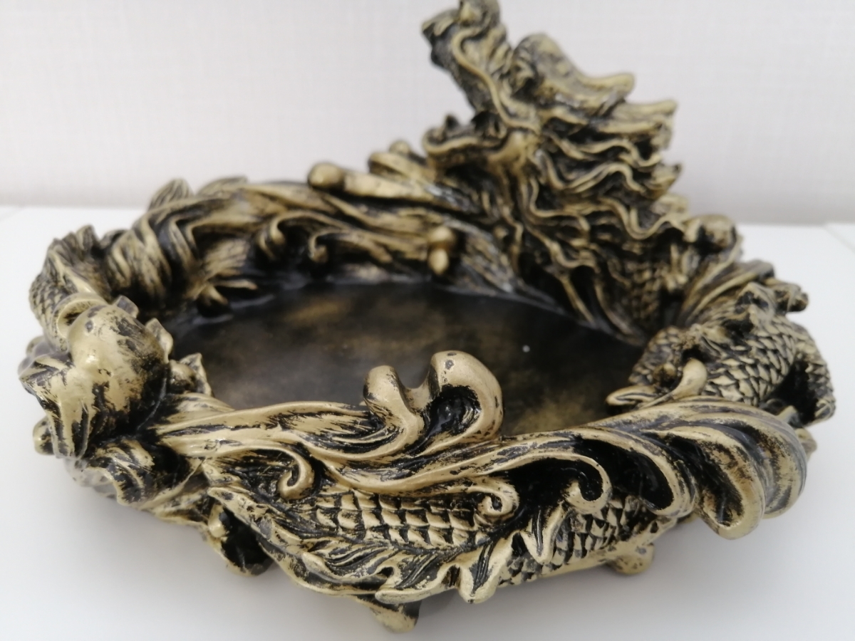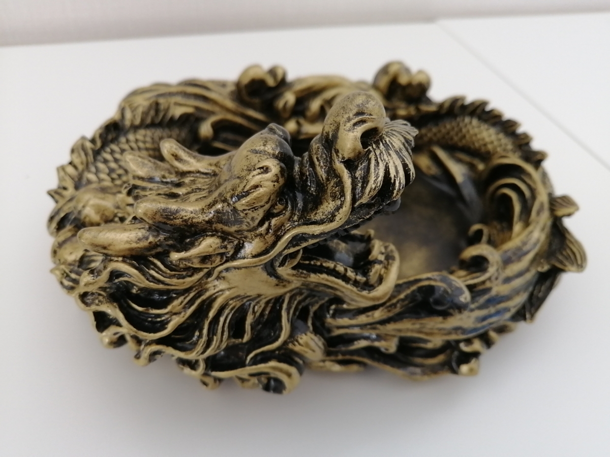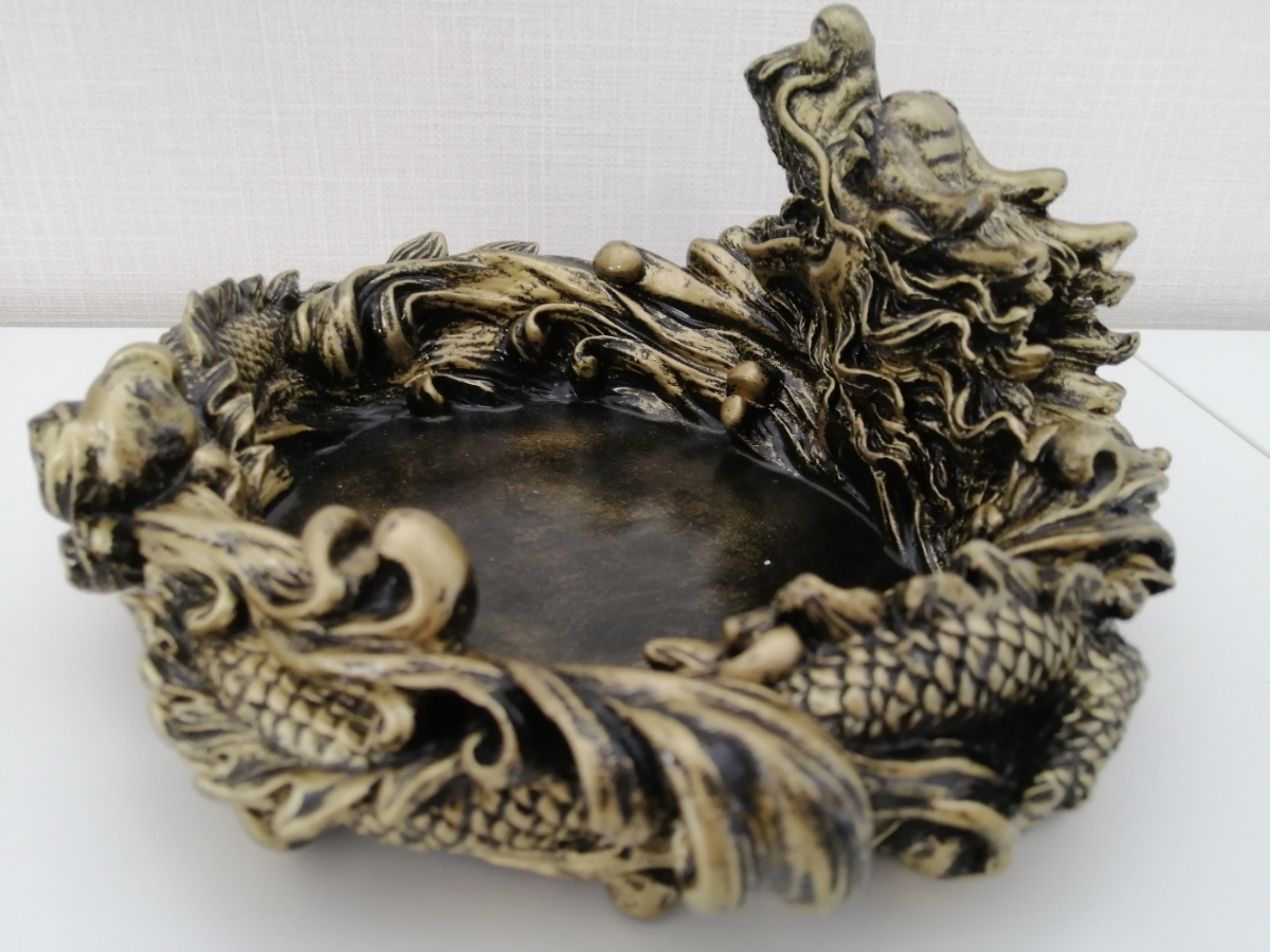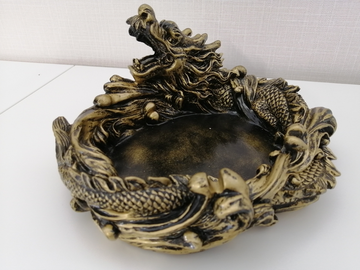 迫力のある龍がとぐろを巻く姿の灰皿です。
