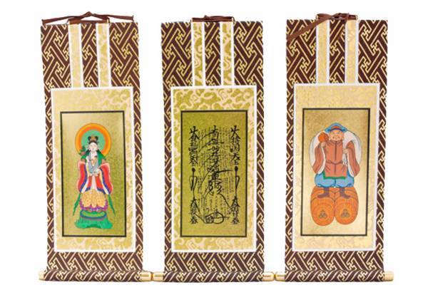 日蓮宗用 掛軸1式 豆170mm×90mm  茶金 曼荼羅 大黒天 鬼子母神