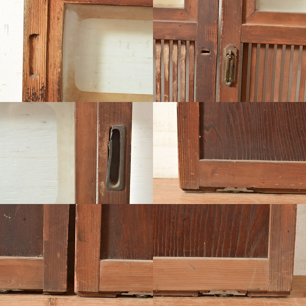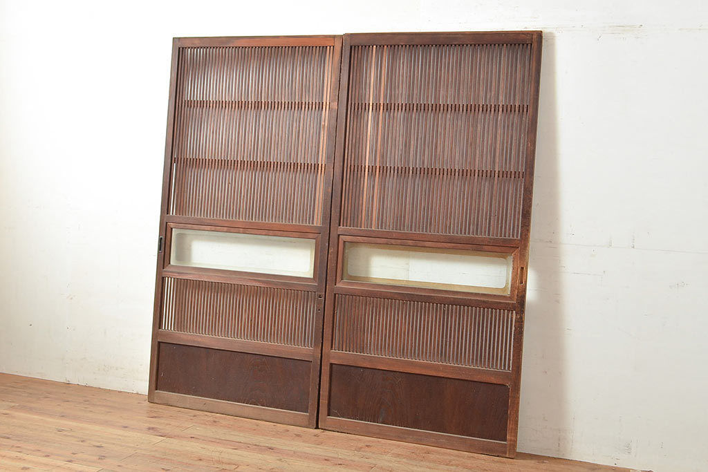 R-049287 アンティーク建具 整然と並ぶ縦桟が情緒溢れる格子戸2枚セット(引き戸、建具)(R-049287)