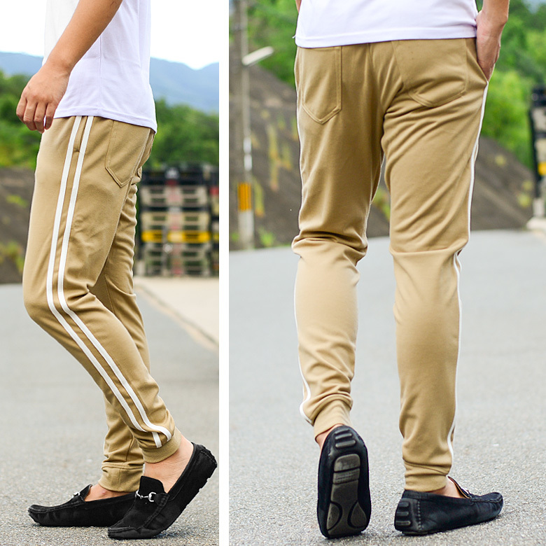 サイドのラインは美脚効果を演出し、裾が絞れたジョガーパンツタイプとなっており、