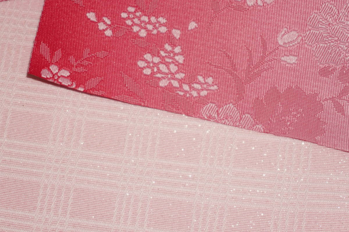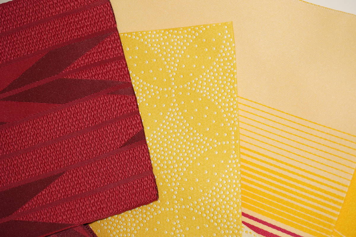 上段は 臙脂系、うすめ黄からし?(細かく薄金ラメあり)、と刺繍ポリ紗白襟