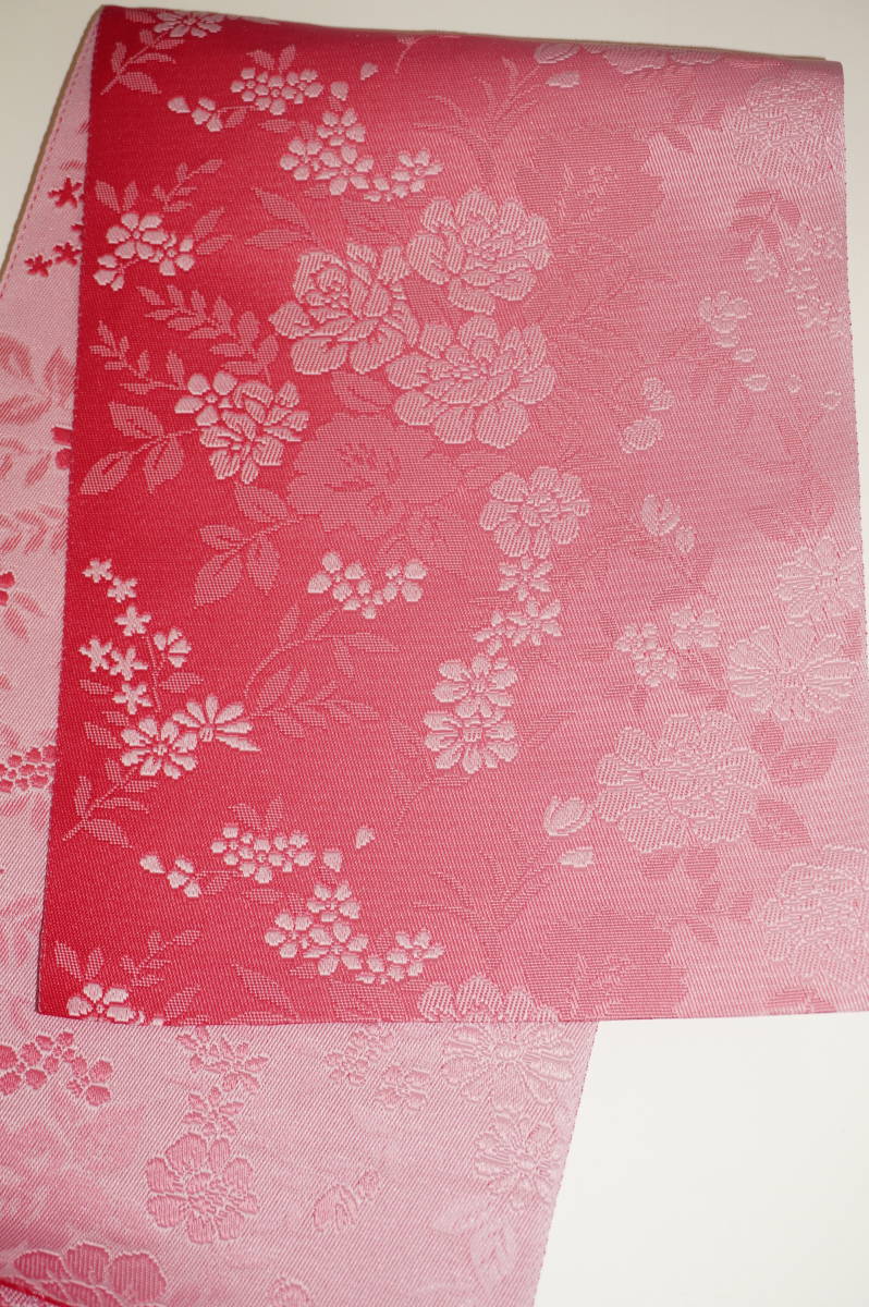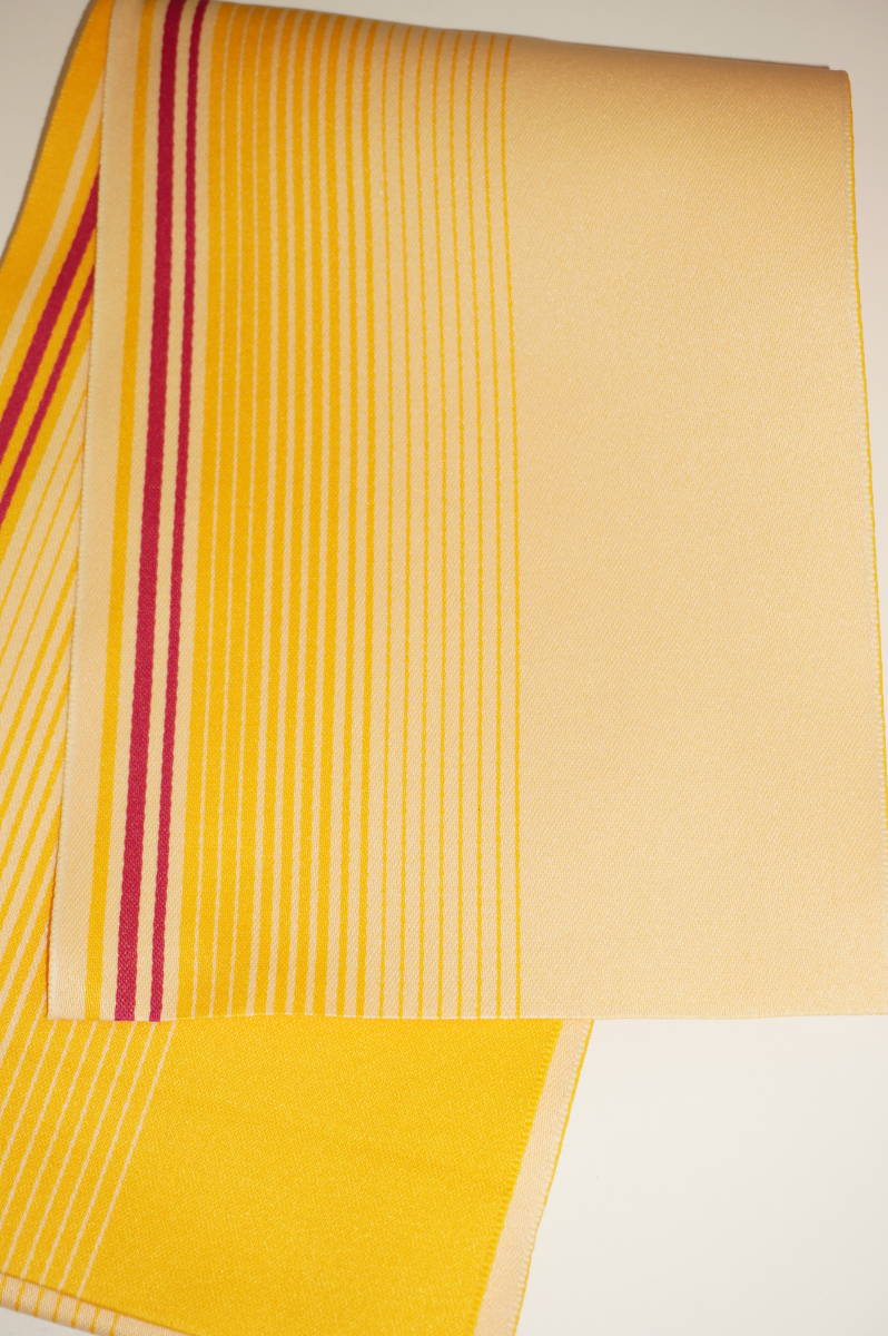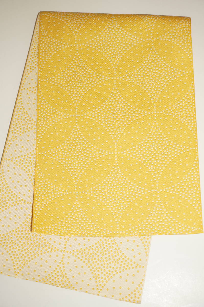 浴衣帯 巾約17cm前後 長さ規定M(普通約350cm前後)。ポリエステル100% 新品ですが、些細な紋傷(織り模様の型での糸とびとか)がある場合がありますが、着用に差し支える重大な欠陥ではありません(AB品)。その分お安く出品です。(個別ポリ袋はありません。)