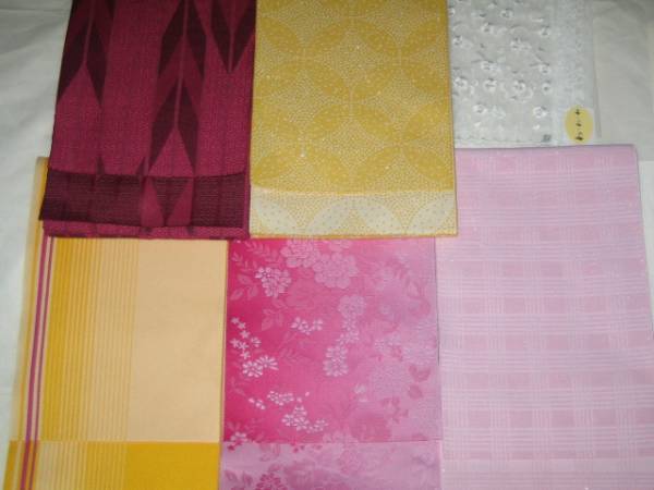 柄浴衣帯x5本+ポリ紗白刺繍襟x1枚