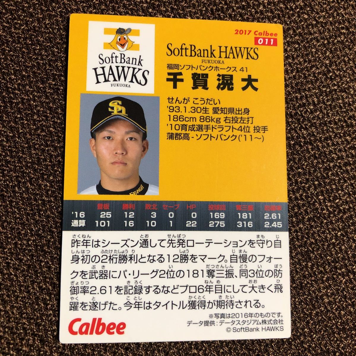 カルビー 2017プロ野球チップストレーディングカード 福岡ソフトバンクホークス 41 千賀滉大 ノーヒットノーラン達成です。