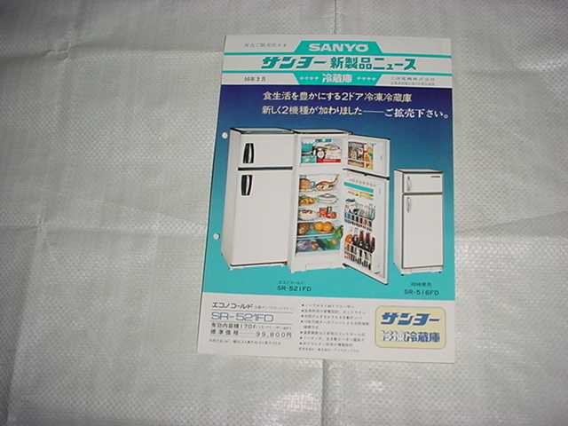 昭和50年3月 SANYO 冷蔵庫 SR-521FDのカタログ