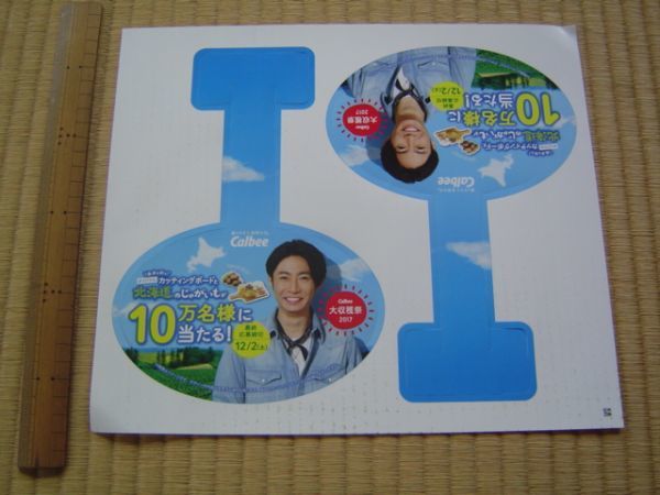 30×26cmほどの紙製です。表面はケント紙状のようにつるつるしています。紙の看板のようなものです。相葉雅紀さんのファンの方ぜひどうぞ。
