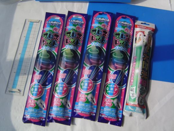 ・ブレスレットスリムの方は緑と青とピンクでスティックを折り曲げ、ネックレスやブレスレットとして使用できます。コンサート会場などで活躍、目立ちアイテム。
