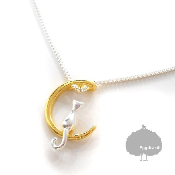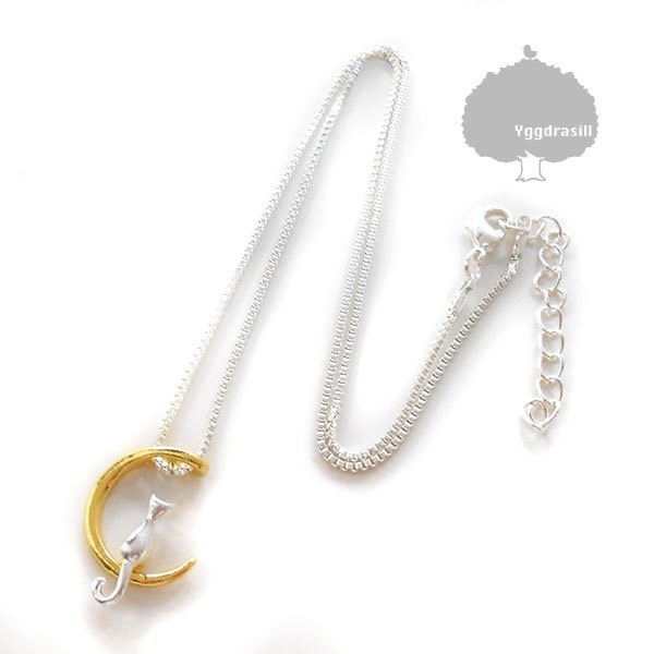 商品名:YGG★新品 ムーンキャット 猫 月 ネックレス 50㎝ ペンダント ゴールド×シルバー 金×銀