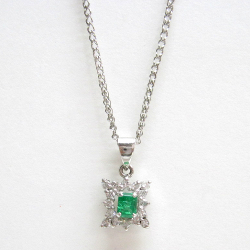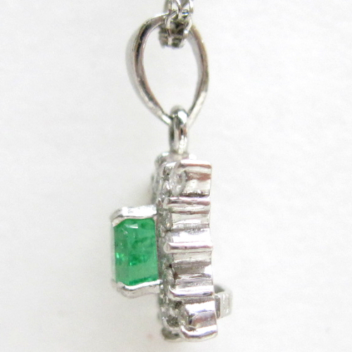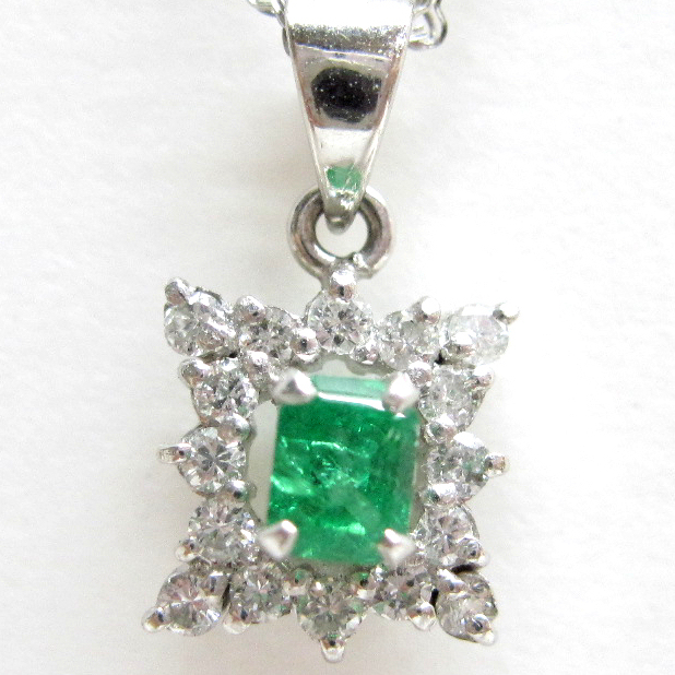 こちらはエメラルド/ダイヤ プラチナペンダントネックレスになります 5月の誕生石であるエメラルド そのエメラルド0.17ctを頂点に、周囲にダイヤ合計0.22ctあしらった ペンダントトップです ペンダントトップはプラチナ900、ネックレス部分にはプラチナ850を使用 本物の地金物の持つ重厚感、輝きがあります ハイクオリティージュエリーをお探しの方はぜひお求めください 【商品詳細】 地金:ペンダントトップ部 プラチナ900(刻印あり) ネックレス部 プラチナ850(刻印あり) 石:エメラルド0.17ct ダイヤ0.22ct サイズ:ネックレス長40センチ(アジャスターにて4.5センチ短く調節可能) 重量:2.5グラム |