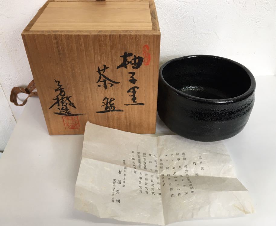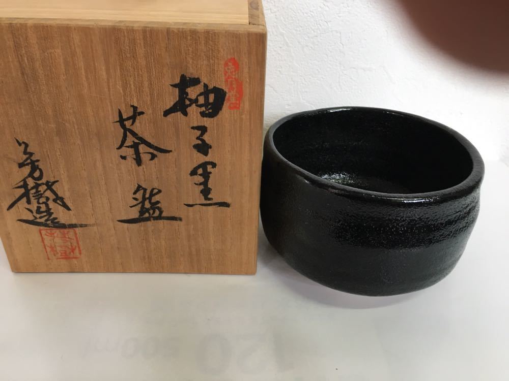 未使用 瀬戸焼 兎月窯 杉浦芳樹造 柚子黒茶碗 茶道具
