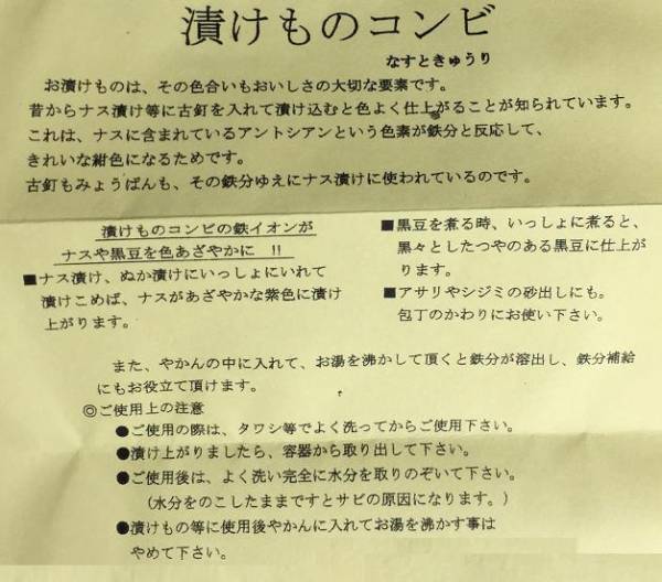 茄子や漬物の色出し・鉄分の補給に!!