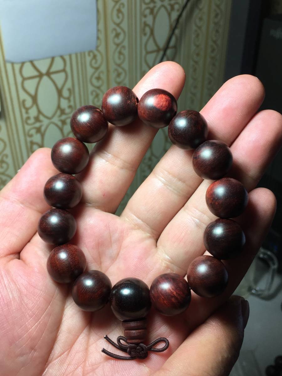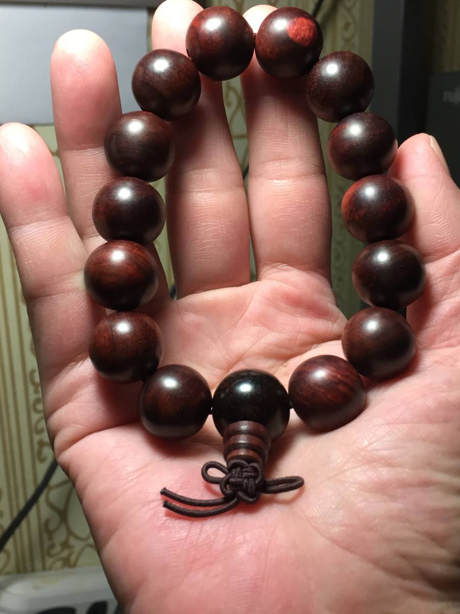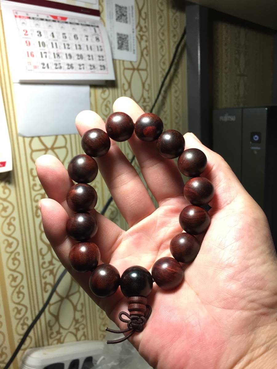 写真をご覧下さい。この品は、インドに産出される天然最高級小葉紫檀木で製作された数珠ブレスです!