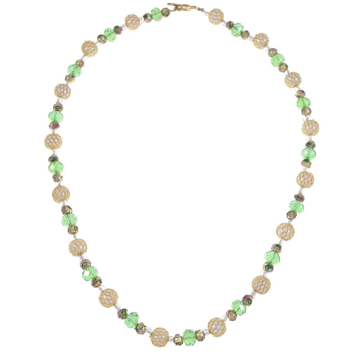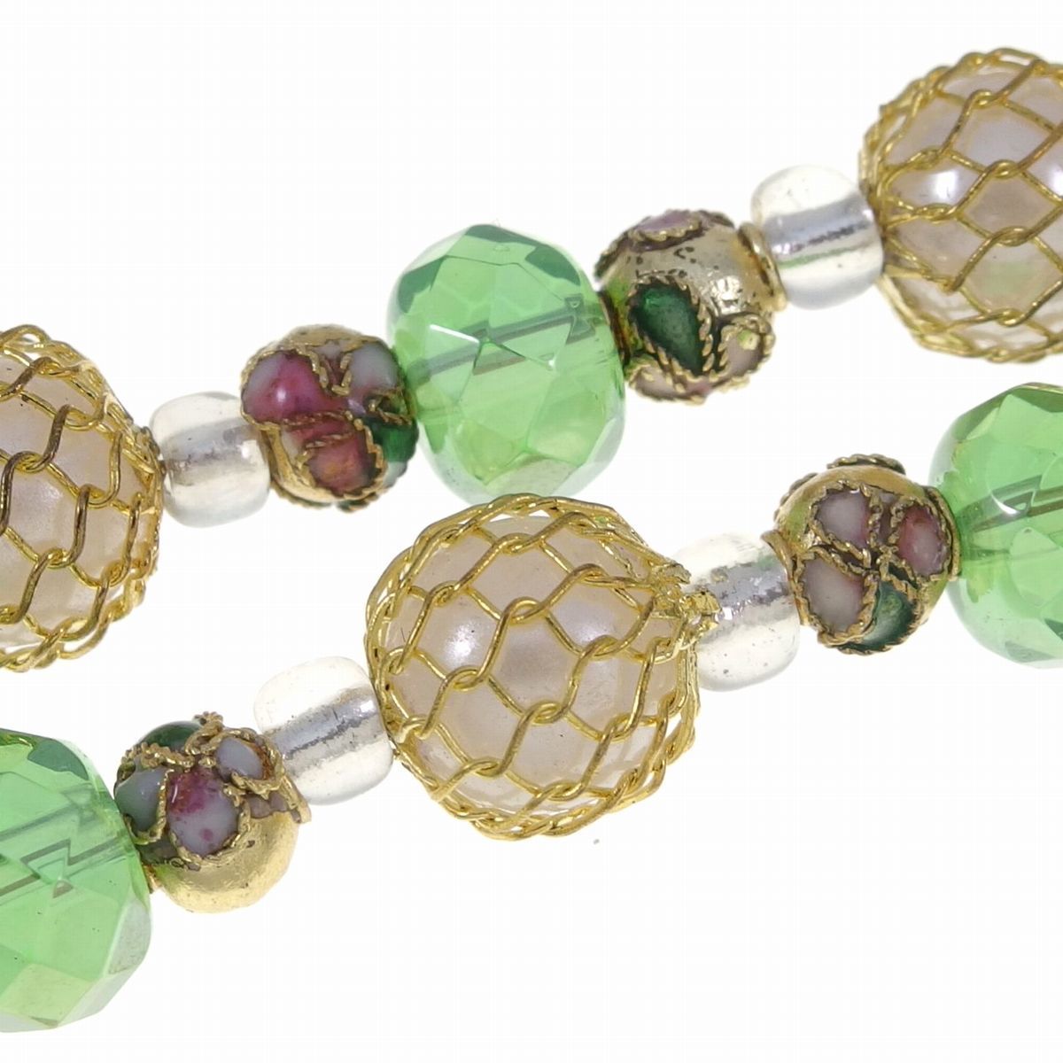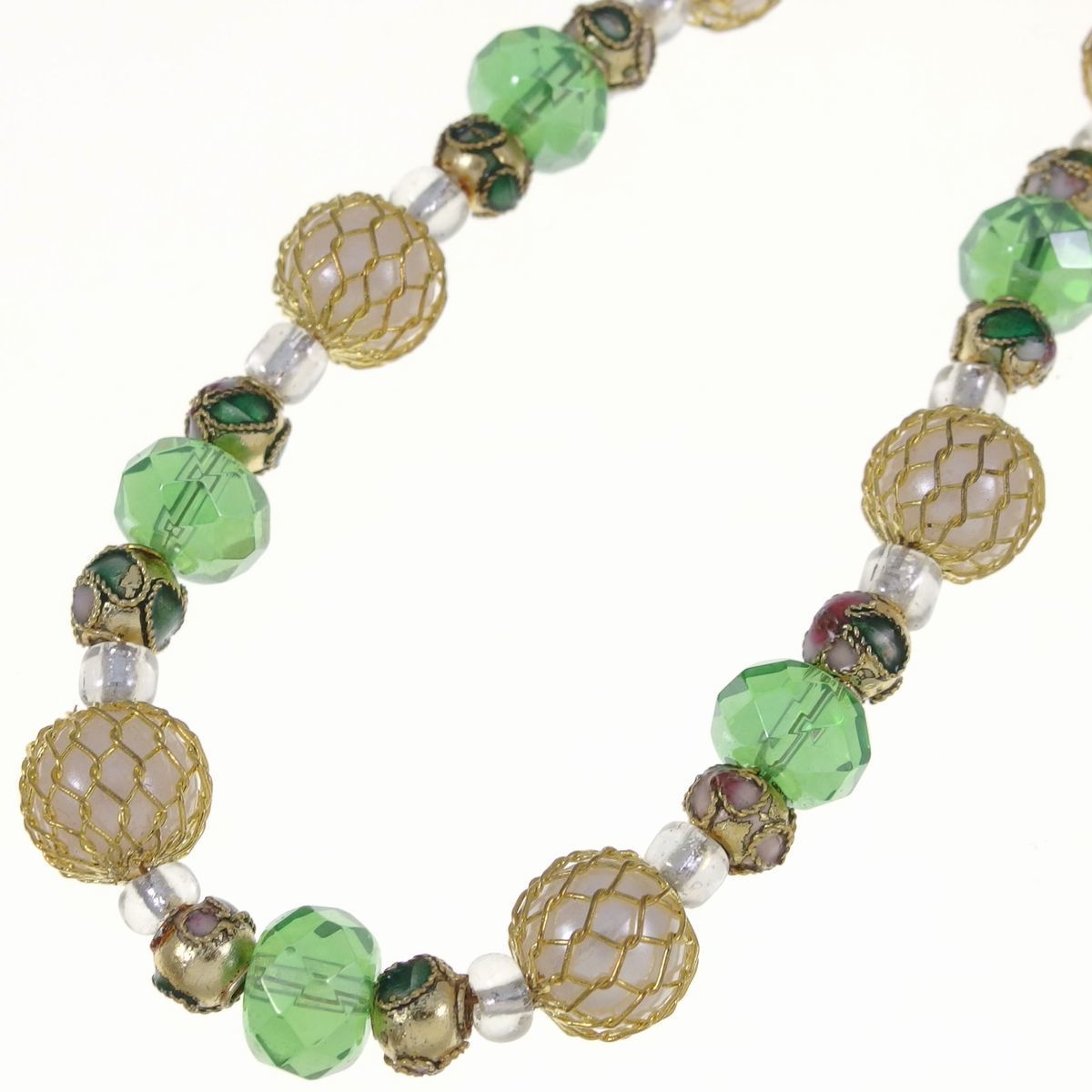 A3070◆ 金の網で包まれたきれいなビーズのヴィンテージネックレス ◆ 長さ約50㎝ ◆