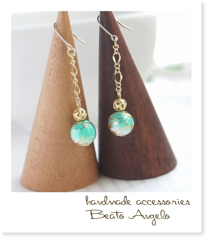 ◇◆+angelo+唐草ビーズと透かし玉のチェーンピアス(p-017)翡翠 G 浴衣 和 夏 花火 グリーン ヒスイ