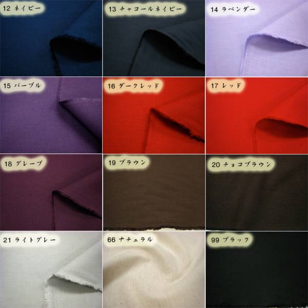 定番素材、綿麻キャンバスの無地。カラーが豊富でたくさん楽しめそう。色目も定番系の色が多く揃っています。比較的薄手のキャンバス地で幅広く扱えます。インテリアや小物など、様々な作品作りを楽しんでください。